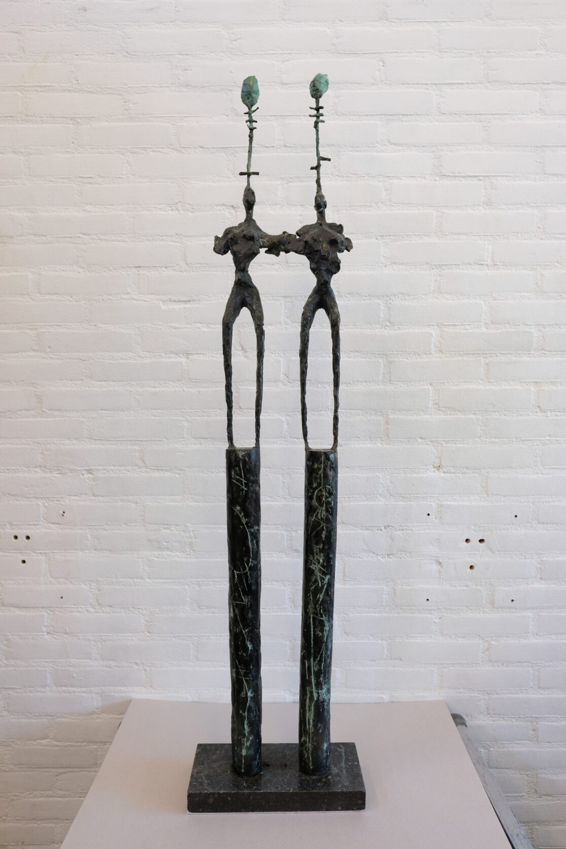 Dit sculptuur door de kunstenaar Nelson Carrilho is een typisch voorbeeld van zijn werk door de open structuur van het brons en de houdingen van de figuren. Het doet onder andere denken aan een ander werk van de kusntenaar genaamd “Dragers van verre” dat in het Westerpark in Amsterdam staat. Het behandelde werk is echter een stuk kleiner van formaat en de twee figuren dragen twee rozen op hun hoofd. Een van de rozen was van het hoofd afgebroken en ook nog in twee stukken. Na de restauratie staan de beide rozen weer stevig op de juiste plek.